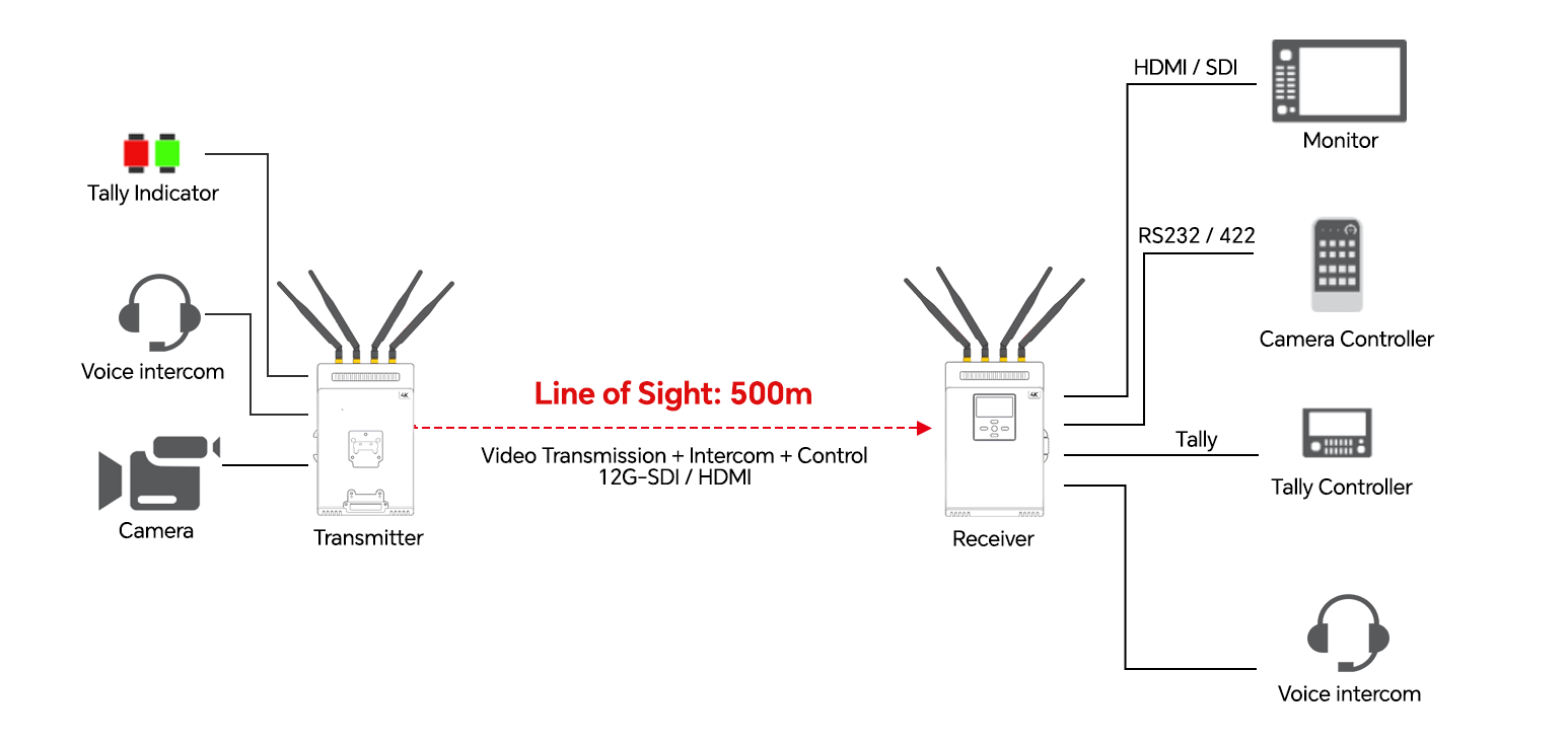 The Broadcast-Grade 12G 4K Wireless Video Transmission System delivers uncompressed, low-latency 4K UHD video over a 5GHz wireless network with professional 12G-SDI and HDMI 2.0 interfaces. Designed for broadcast studios, film production, and live event coverage, it meets the demanding requirements of professional-grade workflows.