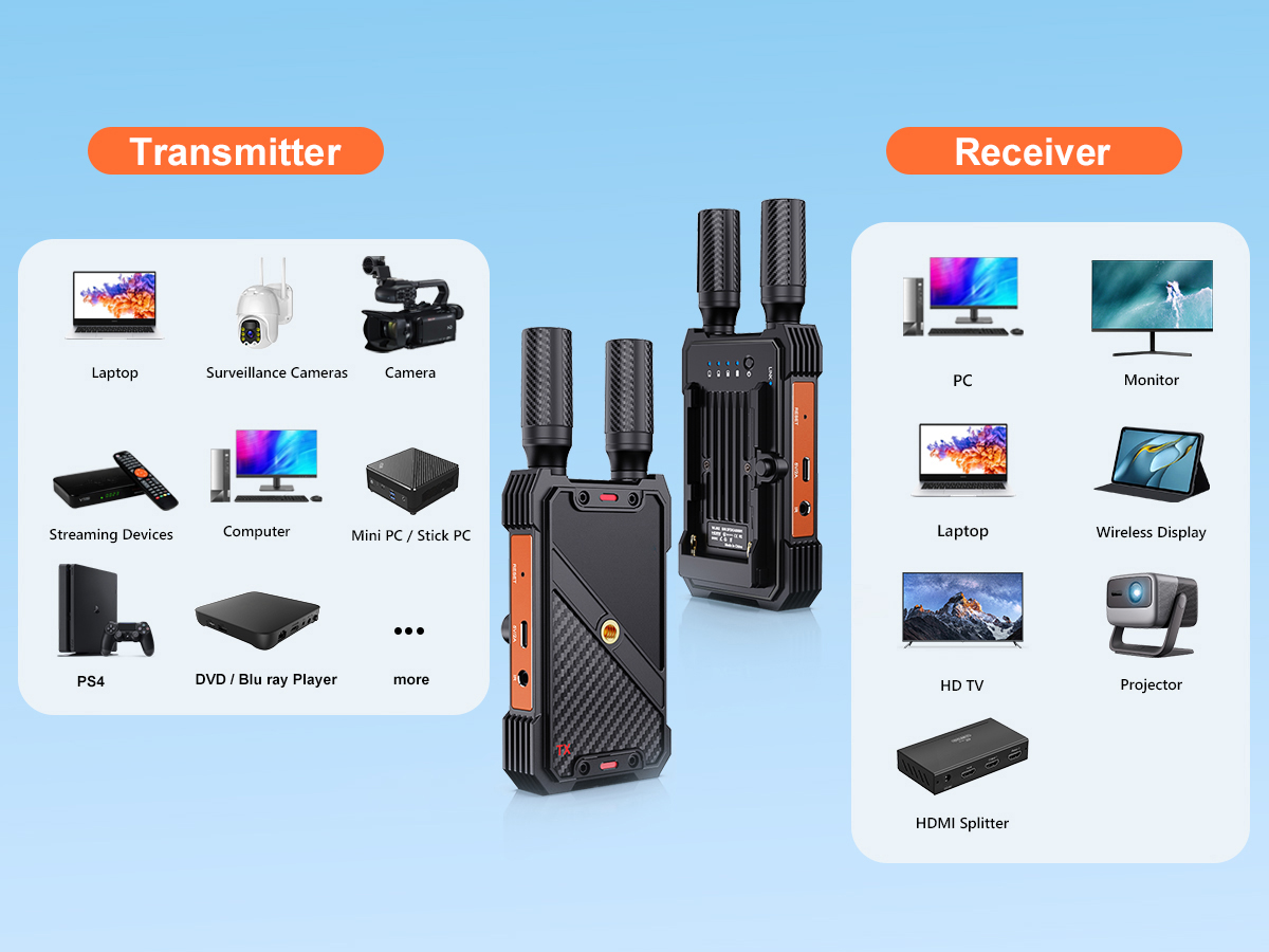 Supports 1080p@60Hz (backward compatible) with ultra-low latency ≤0.05s and a clear line-of-sight range up to 400m (1312ft) — an ideal choice for outdoor live broadcasting.